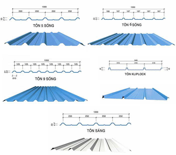 | 1 | Tôn 5 sóng – 9 sóng | Khổ 1,000mm |